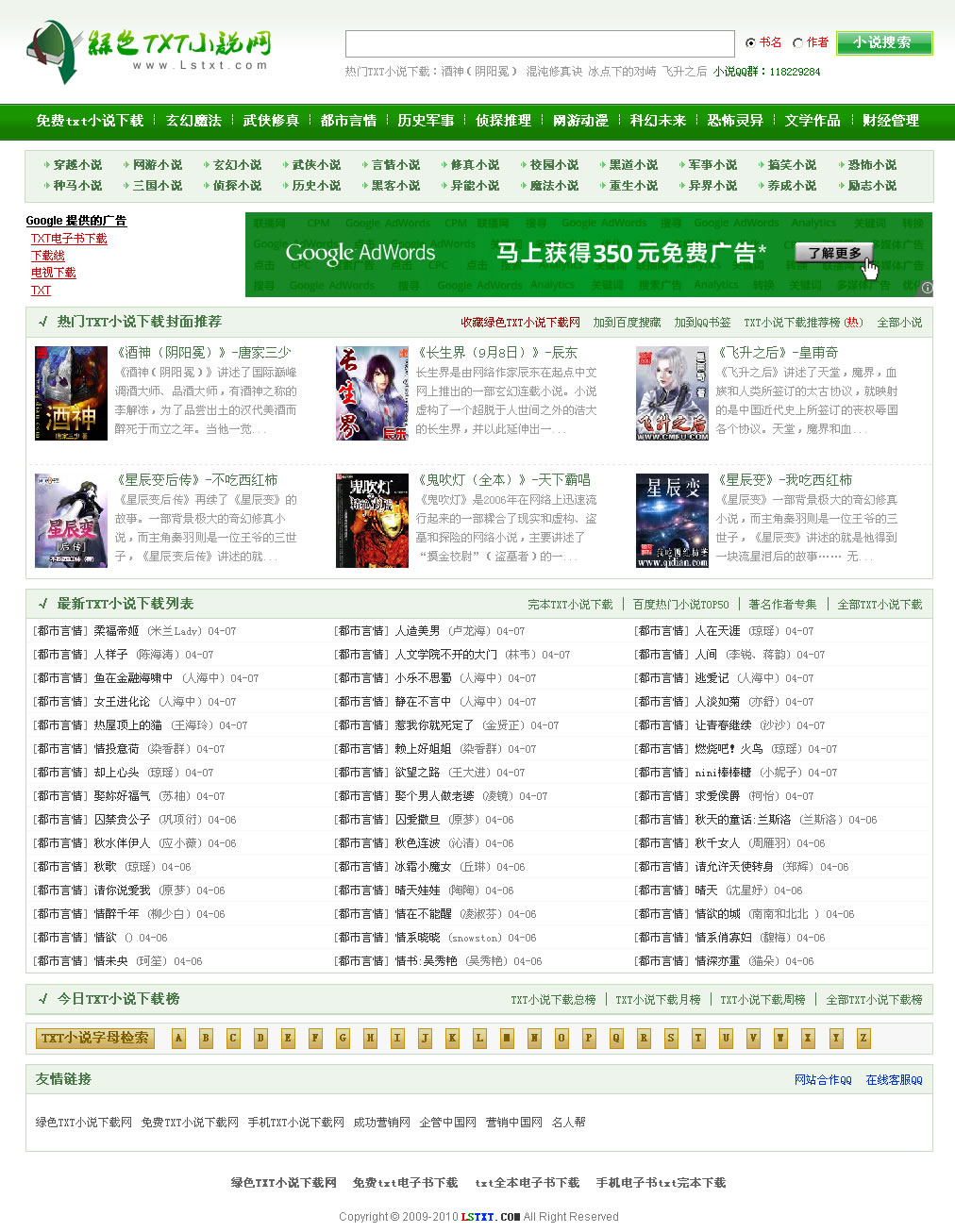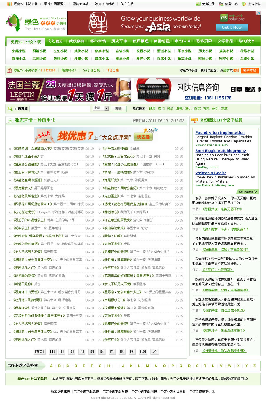 绿色Txt小说下载网-第一版绿色模板发布下载地址