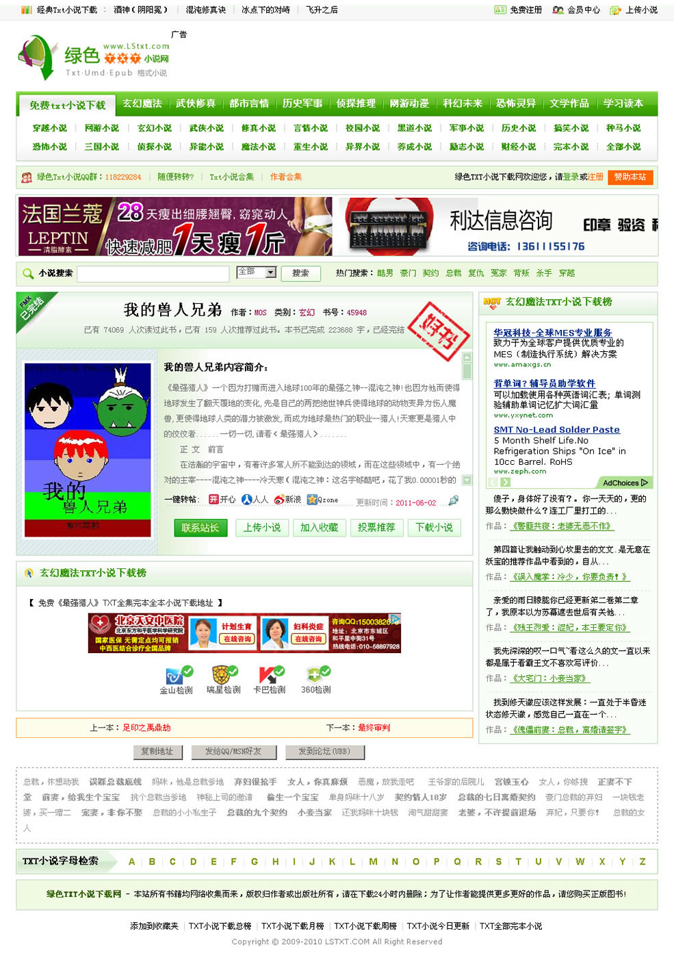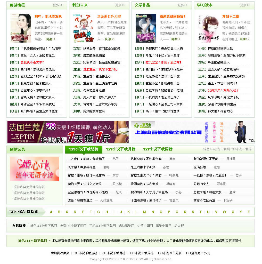 绿色Txt小说下载网-第三版绿色模板展示